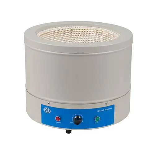 A heating mantle is designed to heat up samples or fluids in laboratories. Therefore the fluid that has to be heated is put in a round-bottom flask inside the heating mantle, which is heated up by means of a heating element. A heating mantle is an auxiliary device that is applied mainly in laboratories. The heating mantle helps you to heat or temper various samples or chemicals in the laboratory. The round-bottom flask that holds 100 ml is placed into a crocheted net and is heated by means of a heating element beneath.