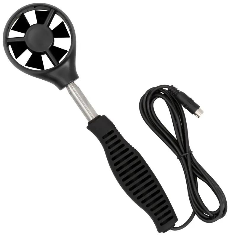 Depending on the orientation of the impeller, the multifunction anemometer can also be used to determine the wind direction. This is made possible by the anemometer's built-in gyroscope. At the same time, the current ambient temperature between 0 … 45 °C / 32 ... 113 °F is displayed on the anemometer. For optimal alignment, the telescopic arm of the anemometer can be extended up to 315 mm / 12.4".
