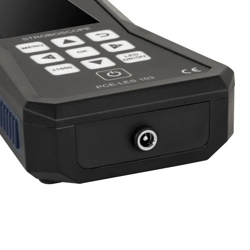 Motion analysis of rotating machines is quick and easy with our car measuring device. The car measuring device is equipped with 3 high-power LEDs, which together generate a light intensity of 11730 lux at 20 cm / 1000 Hz. Sketch of the respective light intensity at different distances.With the car measuring device, you can precisely set the flash frequency in both FPM and Hz. It is also small, handy and mains-independent thanks to the rechargeable battery.