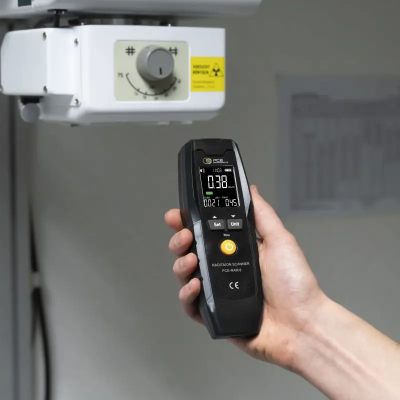 The radioactivity data logger is equipped with an adjustable acoustic alarm that alerts you if predefined radiation values are exceeded. The long battery life ensures reliable measurement over long periods of time without interruption. The field of application ranges from radiology to disaster control. Radiation measuring devices from PCE Instruments are also used in industry.