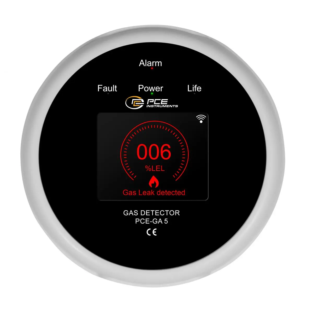 The detector is equipped with a color LCD display that shows the date and time as well as the gas values, the temperature and the remaining sensor life. A Wi-Fi connection is used to connect to the "Smart Life" app, which can be used to monitor the status of the device worldwide. In the event of an alarm, an acoustic and visual warning, a voice message and a push notification are sent to the smartphone. In addition, a connected valve can be activated automatically to stop the gas supply. The sensor has a service life of five years and the device requires a warm-up time of 180 seconds after switching on. The detector is supplied with 5V/1 A power via micro USB and consumes less than 200 mA.