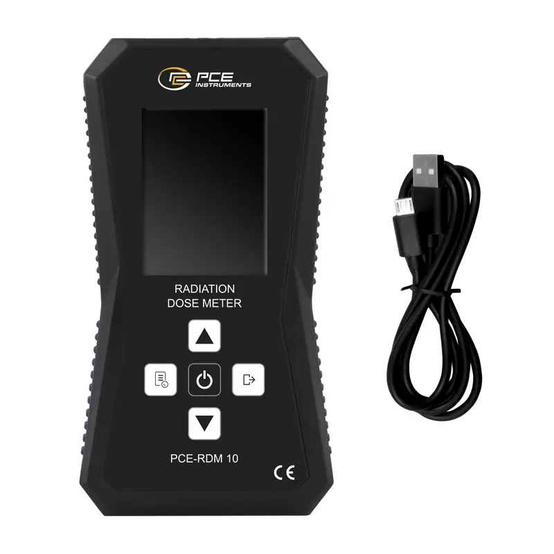 The geiger counter is a portable handheld device for the measurement of Beta, Gamma, and X-rays. A GM tube (Geiger-Müller counter) detects radiation exposure that can be harmful to humans and the environment. The real-time value, the average value, and the accumulated dose are displayed on the geiger counter's large color screen. Additionally, the radiation dosimeter can display a bar graph of the most recent real-time measurements.