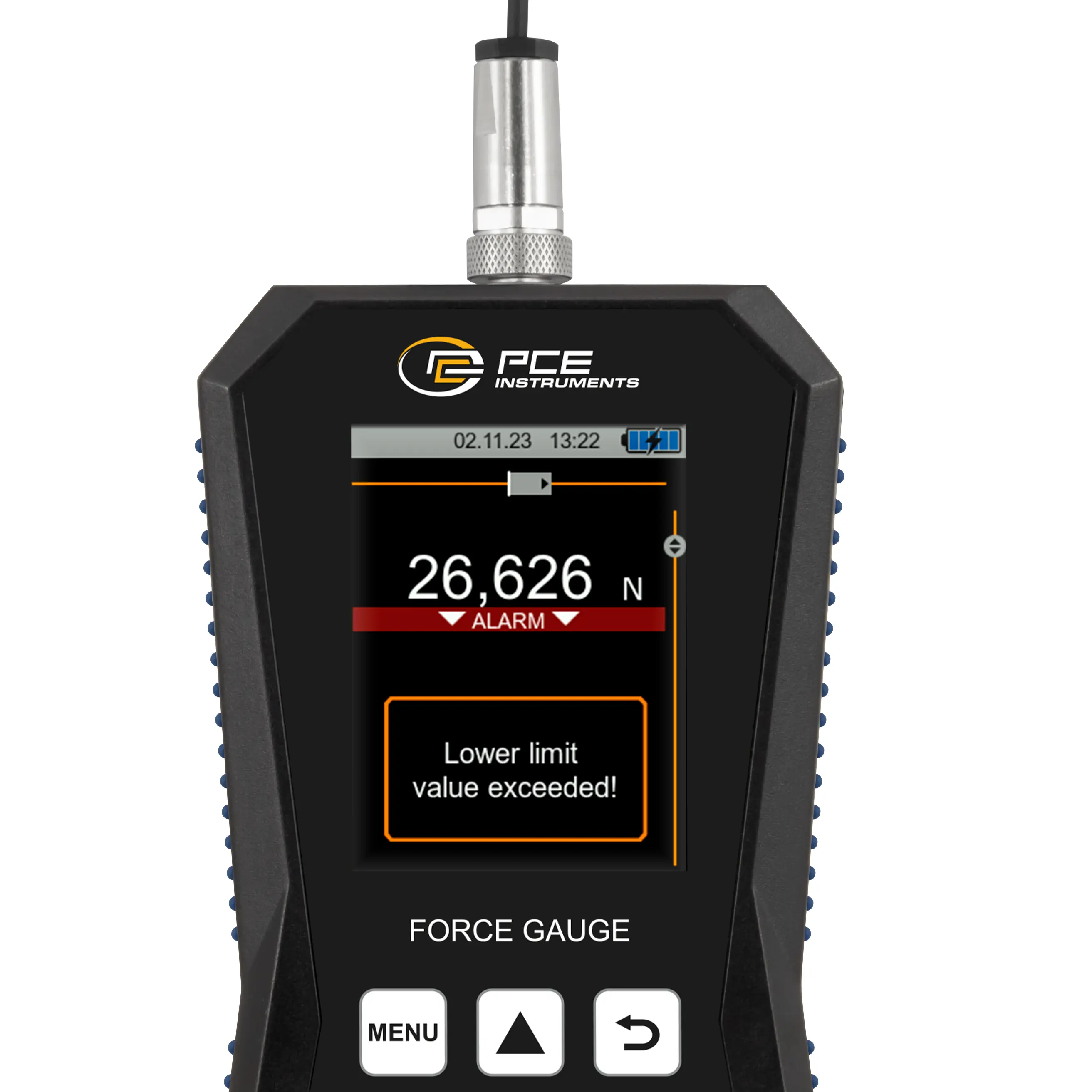 Force Gage with external pressure load cell up to 500 N / various alarm modes / graphic display / data logger / incl. software