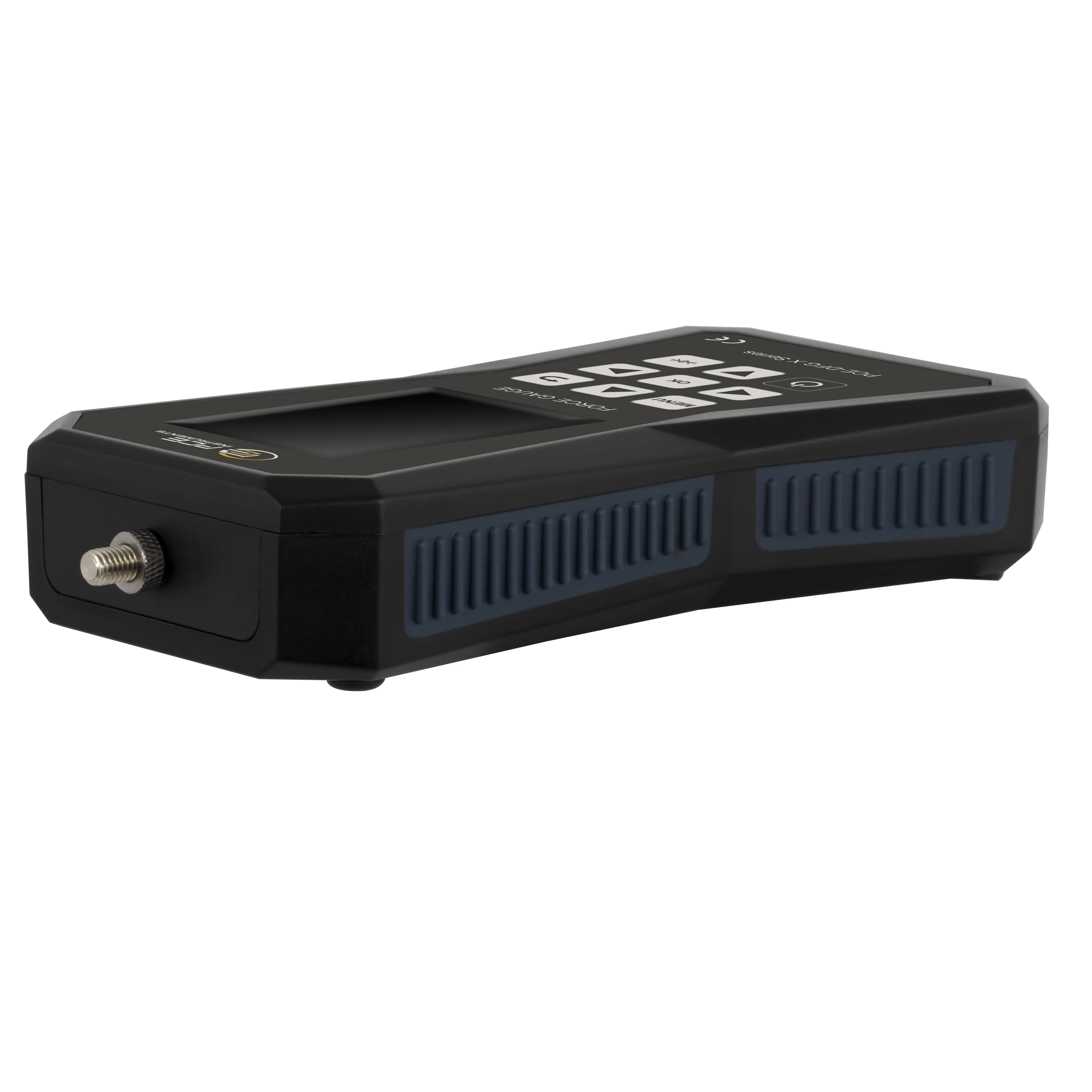 The internal memory of 32 GB offers space for 30 million measuring points. This allows measurement logs to be created, saved and exported. The Force Gage has a USB-C interface that can be used to read the measurement data into the PC software. The Force Gage is equipped with a graphic LCD that displays the measured values both numerically and graphically. In addition, a bar chart shows the measured value in the selected measuring range. Various force test stands are available for adapting the force transducer.