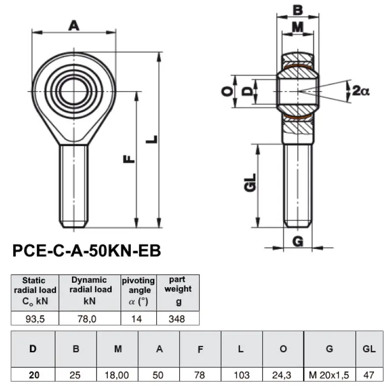 Technical drawing swivel head PCE-C-A-50KN-EB
