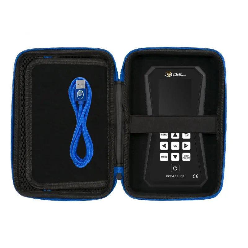 Motion analysis of rotating machines is quick and easy with our handheld tachometer. The handheld tachometer is equipped with 3 UVA high-power LEDs, which together generate a light intensity of 202 μW/cm² at a distance of 30 cm.