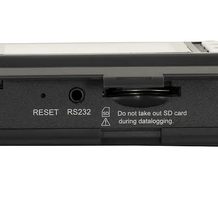 The hygrometer is used to measure air quality. The air quality meter measures carbon dioxide, temperature and humidity. The CO2 sensor from the air quality meter is separated from the main unit with a connection cable. The measured values ​​are displayed on the large display of the air quality meter. The air quality meter data is stored on an SD card. The air quality meter can set the measured data in adjustable intervals of 1 ... 600 seconds.