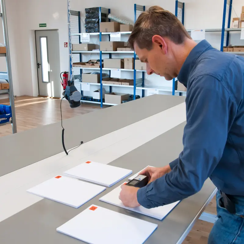 The surface reflection is an important measure to detect, for example, whether a furniture surface for the human eye is too reflective and so unpleasant. The reflectometer PCE-RM 100 can measure this reflection directly in the development of furniture decors and the engineer can make a statement of quality.