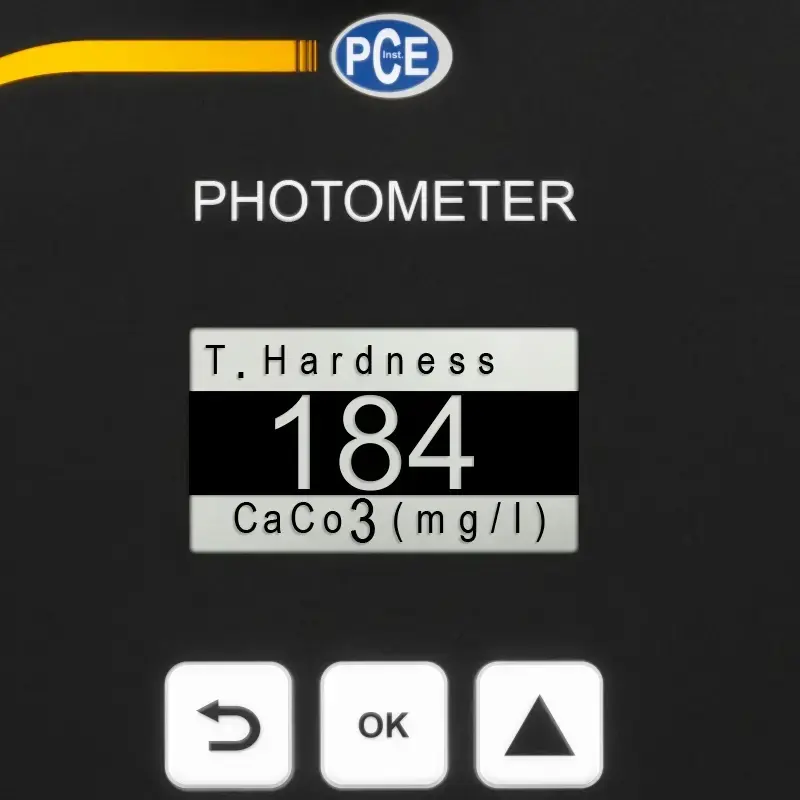 The multi-parameter photometer is a mobile measuring device for liquid analysis. This enables the most varied of measurements to be carried out with the multi-parameter photometer. With this multi-parameter photometer, for example, it is possible to determine alkalinity, chlorine, cyanuric acid or the pH value. In order to carry out a measurement with the multi-parameter photometer, a water sample of 10 ml must be placed in a cuvette. The built-in LED in the multi-parameter photometer generates a test light in the wavelength ranges of 503 nm, 570 nm and 620 nm. A photodiode now recognizes the value to be measured based on the light transmission of the sample.