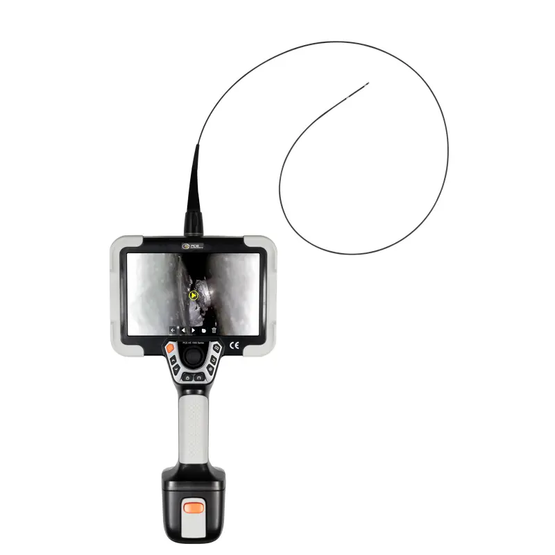 Due to its small camera diameter, the PCE-VE 1500-22190 allows detailed inspections without time-consuming disassembly even in very confined spaces and small access openings. Due to the robust construction of camera and endoscope cable, the high IP 67 protection rating and the temperature resistance up to 80 degrees Celsius, the snake camera can be used in many cases even during operation and without time-consuming preparations. The flexible camera cable, which is only 2.2 mm thick, is about one meter long, from the front edge of the camera head to the rubber coating in the connection area on the motor block. This allows the PCE-VE 1500-22190 to inspect the inner surfaces of narrow pipelines and ducts and complicated components that can only be accessed through very small boreholes.