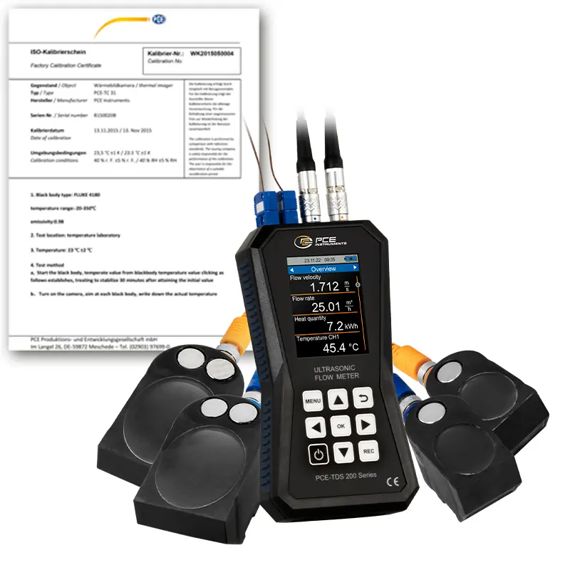 Ultrasonic Flow Meter PCE-TDS 200+ ML-ICA incl. ISO-Calibration Certificate