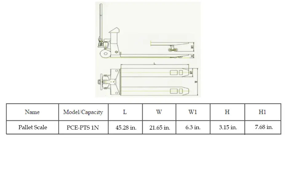 PCE-PTS 1N is a heavy-duty, pallet truck, pallet jack, warehouse, dock or floor scale used to weigh industrial shipments up to 2000 kg / 4409 lbs / 2.2 Tons. Save precious time by weighing your pallets of merchandise right on the pallet jack. Eliminate the use of a forklift to carry pallets of items to a separate scale for weighing. Weigh your goods right at the dock during loading or unloading.