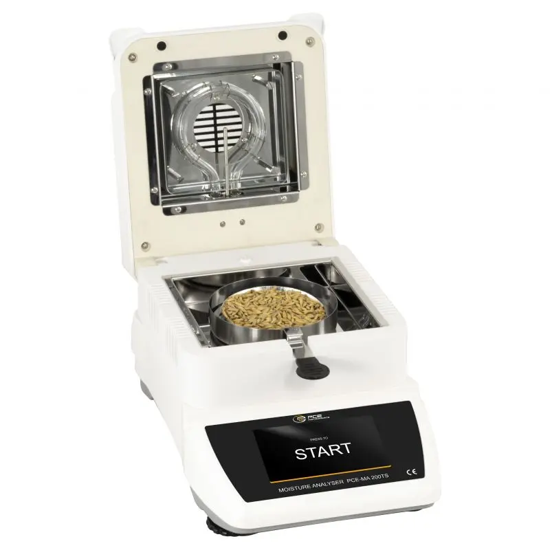 The drying process of the sample makes the precision balance usable in various fields. Thus, the precision balance finds its application, for example, in laboratories to measure the moisture of different powders, in quality control to determine the moisture of granules, or on farms to determine the moisture content of oats, grains, or wheat.