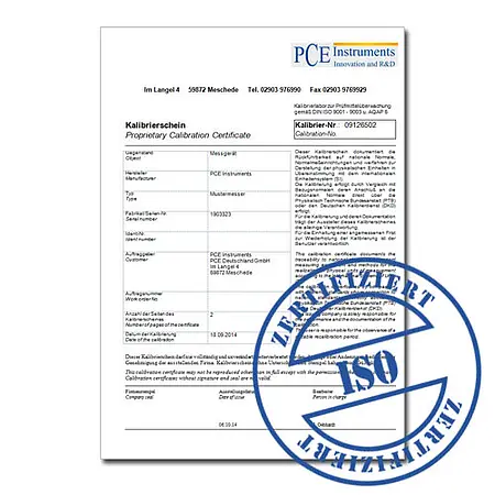 Os certificados de calibração são emitidos especialmente para o cliente e, portanto, estão excluídos do direito de devolução.