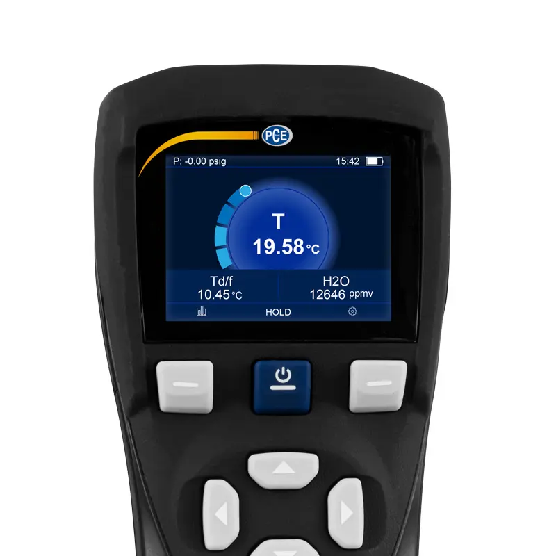 La memoria permite registrar los parámetros de una tubería a presión durante un determinado espacio de tiempo. Los valores se almacenan en la memoria interna del controlador ambiental. Es posible leer los valores registrados en el propio controlador ambiental. También puede conectar el medidor del punto de rocío a un ordenador a través de la interfaz micro USB. Esto permite que el PC reconozca el controlador ambiental como una memoria o disco externo. El controlador ambiental almacena los datos en formato CSV. Esto le permite abrir los valores registrados con una tabla de cálculo.