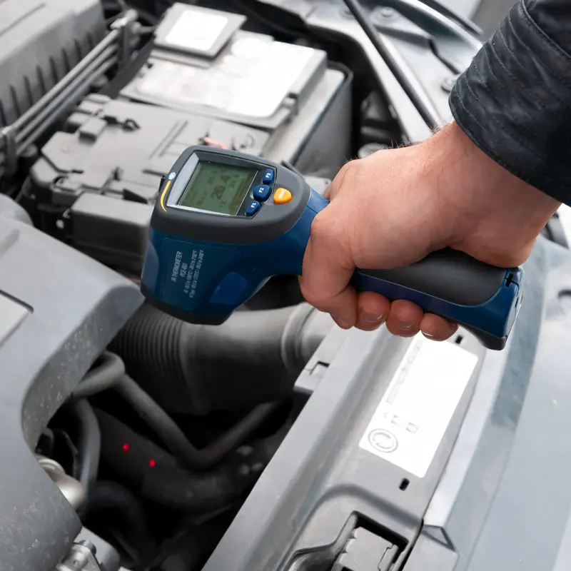 Termometro para medir de forma rápida y sencilla la temperatura superficial / Tiempo de respuesta corto / Ajuste de los grados de emisividad / Memoria / Función MAX-MIN / Función alarma / Rango hasta 1200 ºC / Conexión de termoelementos tipo K / Software