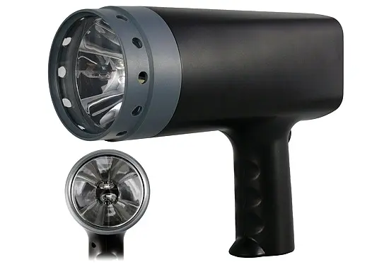 El medidor de revoluciones dispone de la posibilidad de un disparador externo. Además, este medidor de revoluciones trabaja con una bombilla de xenón de 6500 K y un interruptor de multiplicación x2 y x½. Un sólo flash del medidor de revoluciones ilumina el objeto en movimiento durante un breve instante. Pero si la sucesión de flashes es rápida, entonces el ojo humano procesa los momentos de iluminación como una imagen continua. El efecto del medidor de revoluciones se puede comparar con una película: La sucesión rápida de imágenes individuales forman un movimiento. Esto le permite ver con el medidor de revoluciones de mano cosas que ópticamente no pudiera detectar. El medidor de revoluciones dirigido por un microprocesador es alimentado por 230 V y es ideal para el control de las revoluciones en transmisiones, motores, etc., y en general para el mantenimiento y en la inspección preventiva. No es necesario parar las maquinarias e instalaciones para que sean controladas, de este modo podrá ahorrar tiempo y dinero.