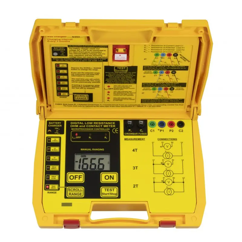 Comprobador de miliohmios con resolución de hasta 1µΩ / carcasa robusta / gran pantalla LCD / accionado a través de un acumulador /