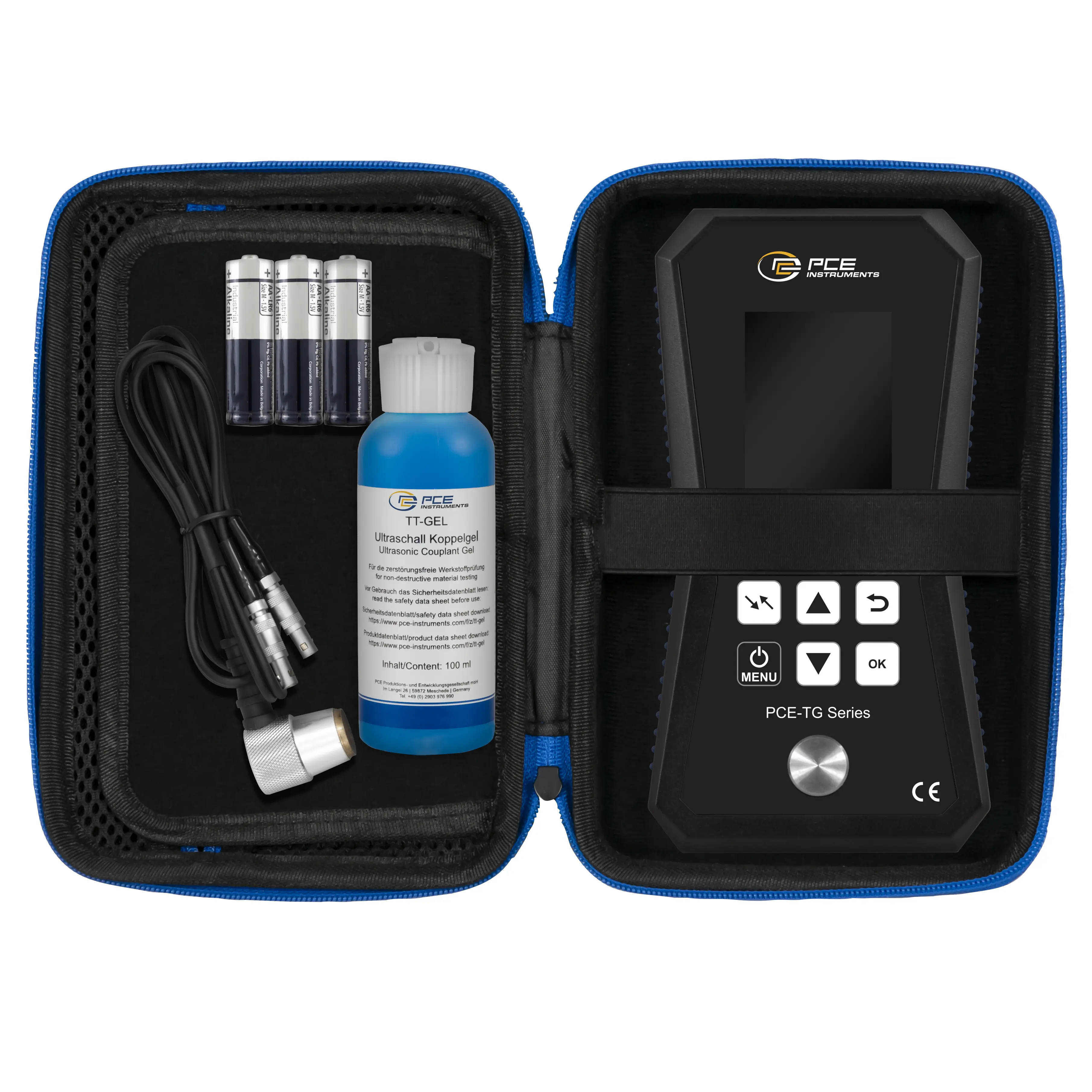 Este equipo ensayo END realiza mediciones en un rango de hasta 225 mm. Para poder medir el espesor de los diferentes materiales homogéneos puede ajustar en el equipo ensayo END la velocidad de ultrasonido. Los materiales como el acero, aluminio, zinc, plata y oro ya están integrados en la biblioteca de materiales del espesímetro. Por esta razón, este equipo ensayo END es un dispositivo de uso universal.