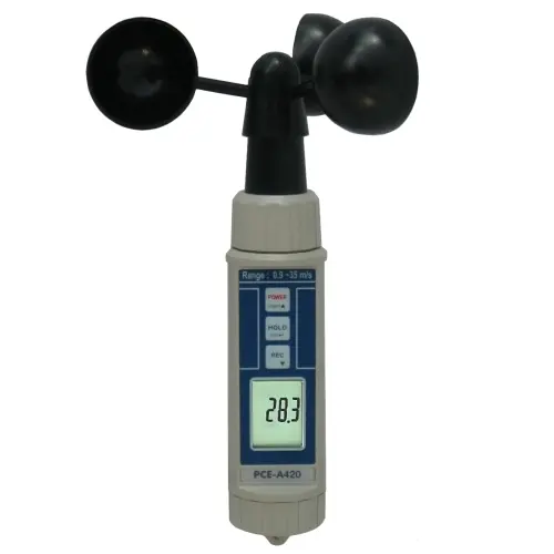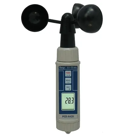 Jo hurtigere vinden blæser, jo hurtigere roterer de åbne halvkugler. Antallet af omdrejninger i minuttet registreres elektronisk. Tæller man omdrejningerne per sekund eller minut, har man et mål for vindens hastighed. Kopvindmåleren bruges normalt i forbindelse med en vindretningssensor, monteret på en ramme, som en fast måleenhed. Luftstrømsmåleren PCE-A420 muliggør mobile målinger af vindhastigheder på op til 35 m/s direkte på stedet.