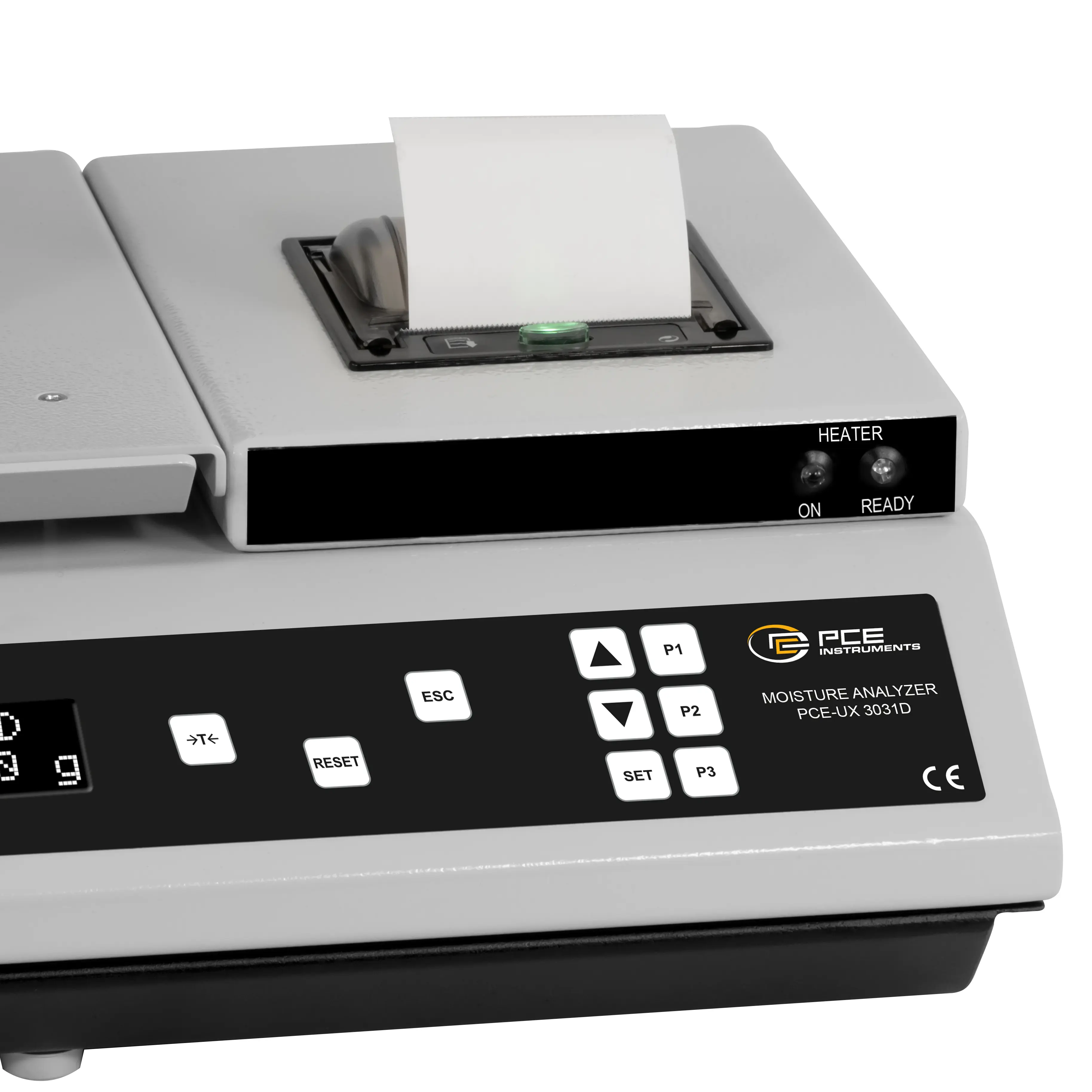 Vægten har to justerbare varmetemperaturområder: 40 °C ... 180 °C og 105 °C ... 360 °C - som muliggøres af to kraftige strålevarmere: en 250 W infrarød varmer og en 375 W kvartsvarmer. Disse varmeelementer sikrer præcise og effektive tørreresultater og kan betjenes uafhængigt af hinanden i timer- eller automatisk tilstand. Til målevaluering tilbyder enheden forskellige parametre som f.eks. % fugt, % tørstof, % fugt ATRO samt g restvægt/kg og restvægt, som gør det muligt at analysere prøven.