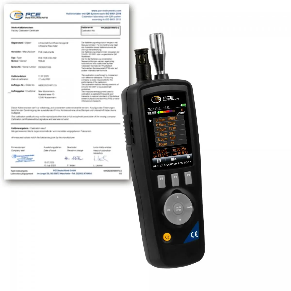 Der Feinstaubmessgerät ist ein universell einsetzbares Messgerät zur Erfassung der Partikelkonzentration in der Luft. Der Feinstaubmessgerät kann dabei sechs verschiedene Partikelgrößen messen. Weiterhin besitzt der Feinstaubmessgerät Sensoren für Temperatur und die relative Luftfeuchtigkeit. Dies macht den Feinstaubmessgerät zu einem echten Allroundgerät. Die eingebaute Kamera ermöglicht es die Messdaten mit Bild / Videomaterial zu verbinden. Der Feinstaubmessgerät wurde entwickelt, um den Verschmutzungsgrad der Luft exakt festzustellen. Die Verschmutzung wird vor allem durch Verbrennung, Fertigung, Energieerzeugung, Fahrzeugmotoremissionen und die Industrie erzeugt. Mit Hilfe vom Feinstaubmessgerät kann die genaue Menge an Schmutzpartikeln in der Luft gemessen werden.