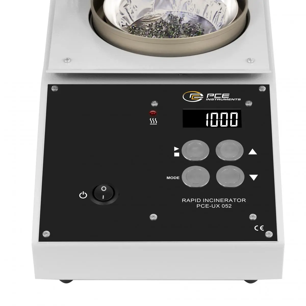 Die Betriebstemperatur kann bequem über das benutzerfreundliche Menü vorgewählt werden. Die Heizhaube / Heizmantel ermöglicht die Einstellung von zwei Heizstufen mit individuell wählbarer Heizleistung und Zeitdauer. Dank dieser Flexibilität variiert die Veraschungszeit einer typischen 5 g Probe je nach Material zwischen 8 und 15 Minuten.