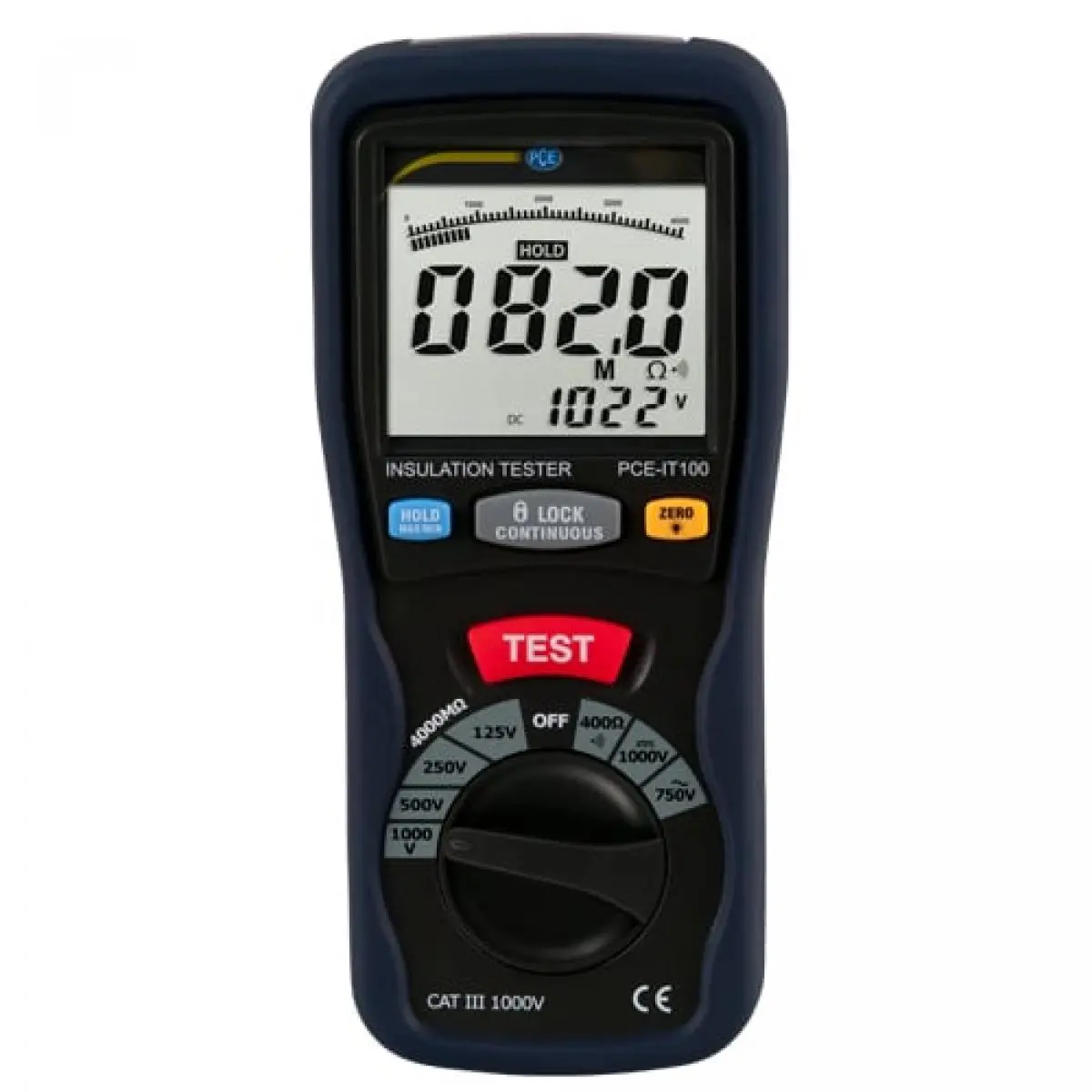 Das Messgerät aus dem Bereich Elektrische Messtechnik erfasst mit Hilfsspannungen von 125 V, 250 V, 500 V und 1000 V Isolations-Widerstände bis max. 4000 MΩ. Weiterhin wird die Messung von niederohmigen Widerständen bis 400 Ω und eine Messfunktion für Wechsel- und auch Gleichspannungen von diesem Messgerät angeboten. Ein Durchgangsprüfer mit Piepton ist ebenfalls Bestandteil der Ausrüstung des Messgerätes. Neben einer Data-Hold-Funktion zum Festhalten des aktuellen Messwertes, kann bei der Spannungs- und Niederohmmessung auch der Max. bzw. Min.-Wert, im Messgerät, festgehalten werden.