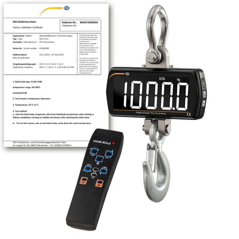 verschiedene Masseeinheiten / mit Haken und Schäkel / großes LC Display / Batteriebetrieb / Schäkelöffnung 23 mm / Summierfunktion / optional mit ISO Kalibrierzertifikat
