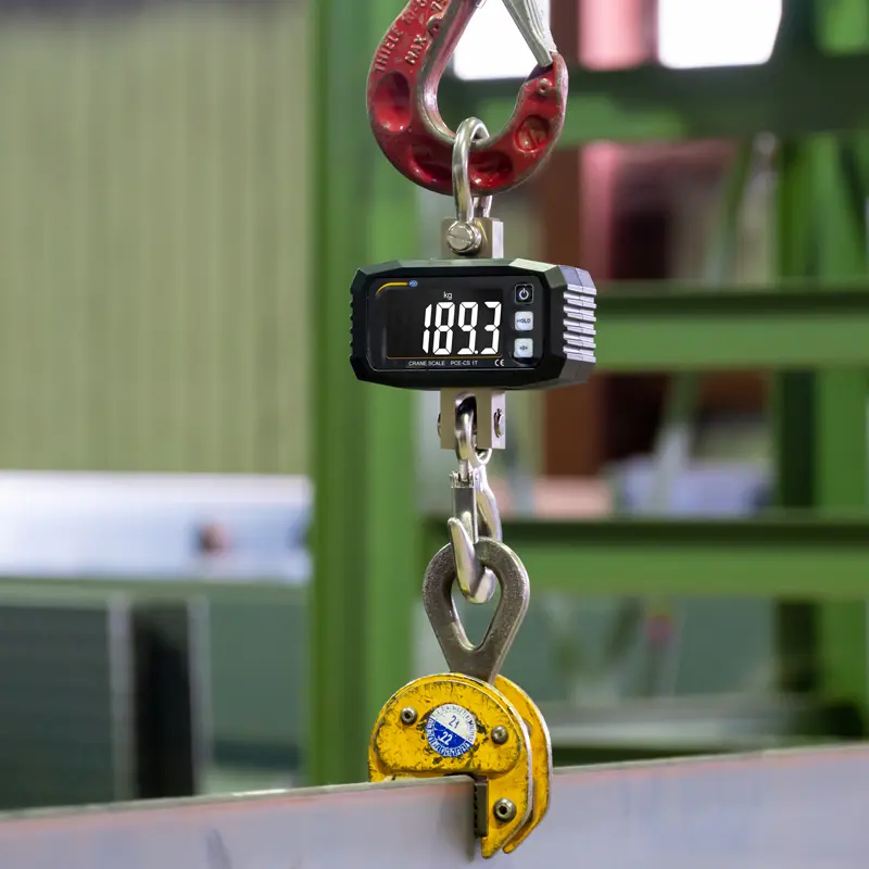 Das robuste Metallgehäuse der Waage aus der Industriellen Wiegetechnik erlaubt einen Einsatz im rauen Industriealltag. Betrieben wird die Waage aus der Industriellen Wiegetechnik über drei 1,5 V AA Batterien. Über die „MAX“ Funktion der Waage aus der Industriellen Wiegetechnik wird ausschließlich die größte gewogene Last angezeigt und gehalten. Mit der „Tara“ Funktion kann der angezeigte Messwert bei der Waage aus der Industriellen Wiegetechnik genullt werden. Diese Funktion kommt dann in Aktion, wenn zum Beispiel Messgeschirr angehängt wird. Die „Hold“ Funktion der Waage aus der Industriellen Wiegetechnik ermöglich das Festhalten eines angezeigten Messwertes. Optional bietet PCE Instruments für die Waage aus der Industriellen Wiegetechnik ein ISO Kalibrierzertifikat an.