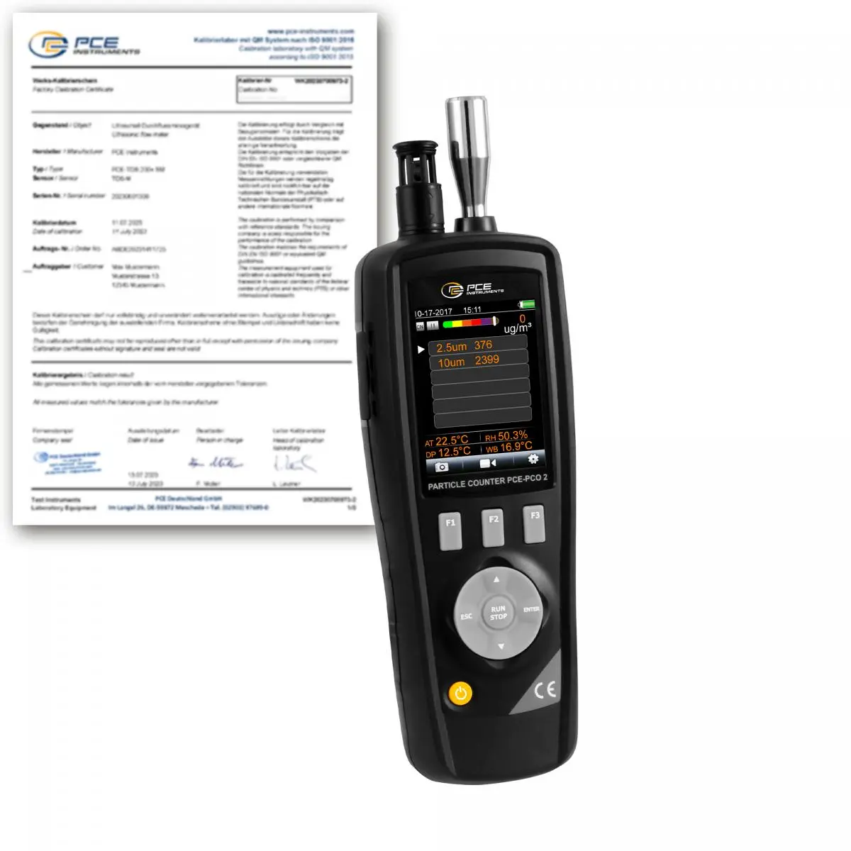 | Zähleffizienz | 50 % bei 0,3 µm; 100 % bei Partikelgröße > 0,45 µm |