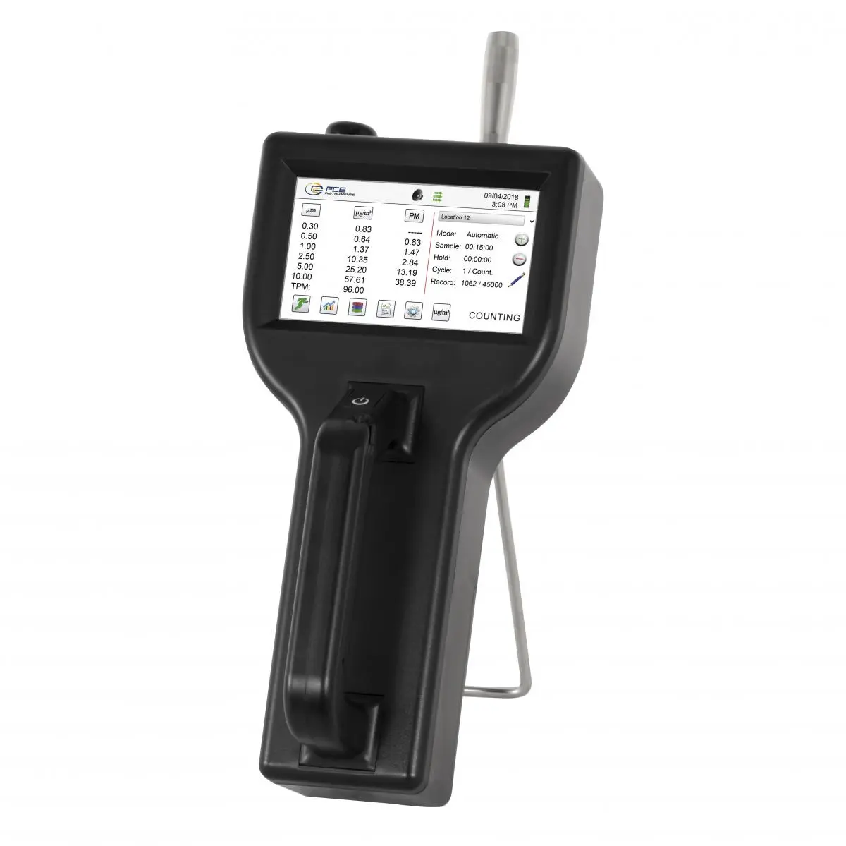 | Zähleffizienz | 50 % bei 0,3 µm 100 % bei > 0,45 µm nach JIS |