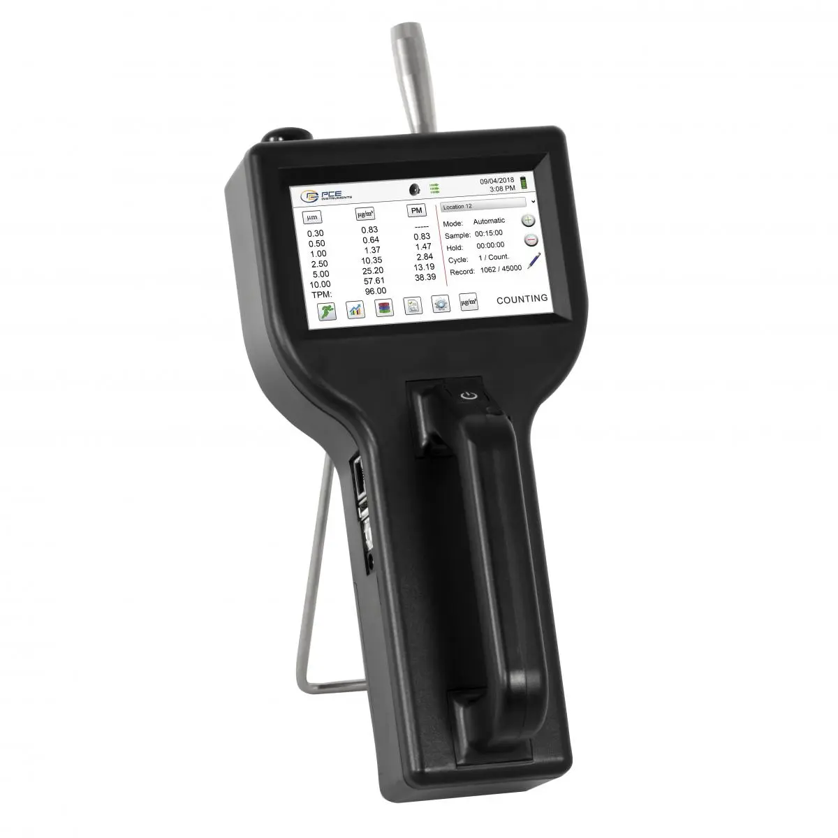 Von immer größerer Bedeutung ist der Verschmutzungsgrad der Luft mit krankmachenden Partikeln wie z.B. Ruß, die von der Industrie und vor allem von Dieselfahrzeugen ohne spezielle Filterung in die Luft abgegeben werden. Solche Dispersionsteilchen sind unter anderem für reduzierte Sichtbarkeit, das Einatmen giftiger Substanzen und somit reduzierter Arbeitsproduktivität verantwortlich. Seit längerer Zeit ist auch bekannt, dass die Teilchen auch einen nicht geringen Beitrag zu vielen medizinischen Krankheiten wie z.B. Asthma, Bronchitis, Haut und Lungenerkrankungen leisten. Der Aerosol Partikelzähler wurde für einen einfachen und schnellen Einsatz entwickelt. Der Aerosol Partikelzähler der PCE-PQC 1xEU Serie arbeitet in verschiedenen Modi (Real-Time, Kumulativ, Differential, Massenkonzentration, ...) und zeigen die Ergebnisse am Display an, bis das Gerät ausgeschaltet wird.