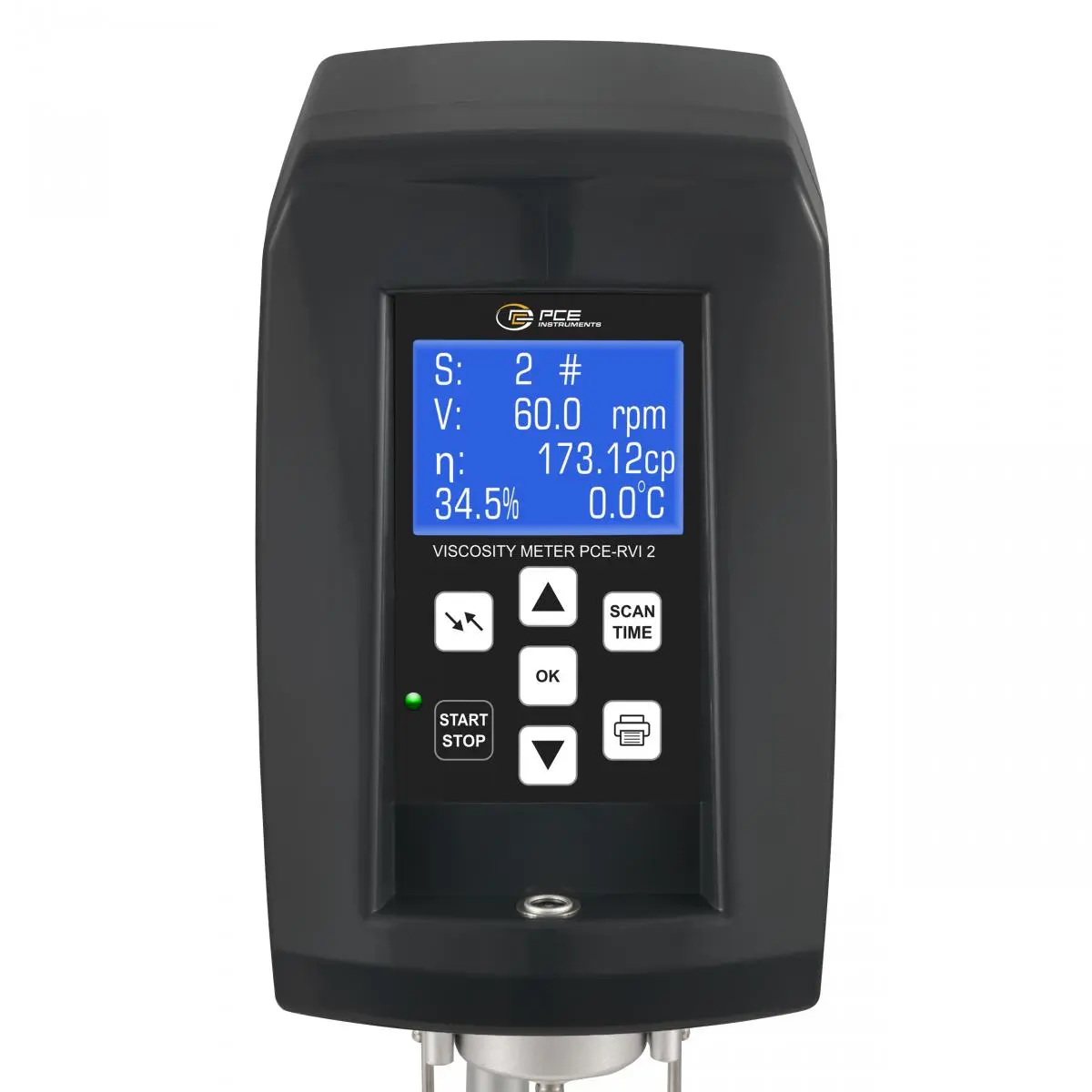 Das Standviskosimeter hat einen Messbereich von 1 ... 100.000 cp. Mit einer Genauigkeit von <±2 % v. Mb. ist das Standviskosimeter ein präzises Messmittel, um die Viskosität einer Probenflüssigkeit zu bestimmen. Die Viskosität ermittelt das Standviskosimeter anhand der eines anliegenden mechanischen Widerstandes, der entgegengesetzt der Rotationsbewegung einer Spindel wirkt. Das Standviskosimeter kann mit einer einstellbaren Drehzahl im Bereich zwischen 6 … 60 RPM betrieben werden.