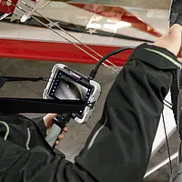 Das PCE-VE 1500-22190 ermöglicht aufgrund seines geringen Kameradurchmessers auch bei sehr beengten Platzverhältnissen und kleinen Zugangsöffnungen detaillierte Inspektionen ohne aufwändige Demontagen. Durch die robuste Konstruktion von Kamera und Endoskopkabel, den hohen Schutzgrad IP 67 und die Temperaturbeständigkeit bis 80 Grad Celsius kann das Videoendoskop in vielen Fällen auch bei laufendem Betrieb und ohne zeitintensive Vorbereitungen verwendet werden. Das nur 2,2 mm dicke flexible Kamerakabel ist, von der Vorderkante des Kamerakopfes bis zur Gummierung im Anschlussbereich am Motorblock, etwa einen Meter lang. Dadurch können mit dem PCE-VE 1500-22190 auch die Innenflächen von engen Rohrleitungen und Kanälen und komplizierte Bauteile, die nur über sehr kleine Bohrungen zugänglich sind, untersucht werden.
