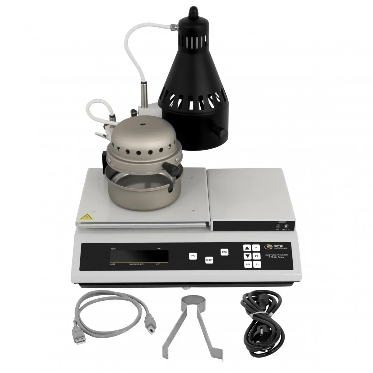 Der Feuchtemesser (Abs.) verfügt über zwei einstellbare Heiztemperaturbereiche: 40 °C ... 180 °C und 105 °C ... 360 °C – die durch zwei leistungsstarke Heizstrahler ermöglicht werden: einen 250 W-Infrarotstrahler und einen 375 W-Quarzstrahler. Diese Heizelemente sorgen für präzise und effiziente Trocknungsergebnisse und können unabhängig voneinander im Timer- oder Automatikmodus betrieben werden. Für die Messauswertung bietet das Gerät verschiedene Parameter wie % Feuchte, % Trockenmasse, % Feuchte ATRO sowie g Restgewicht / kg und Restgewicht, die eine Analyse der Probe ermöglichen.