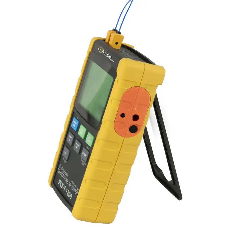 Das 12-Kanal HLK-Messgerät PCE-T 1200 ist ein 12-kanaliger Temperaturdatenlogger mit einer 2 GB SD Karte (möglich sind SD-Karten bis zu einer Größe von 16 GB). Die auf der SD-Speicherkarte gespeicherten Daten können mit Hilfe von Excel auf einem PC ausgelesen werden. Der Intervall zur Datenaufzeichnung kann frei gewählt werden und beginnt bei einer Sekunde je Kanal und geht bis zu 3600 Sekunden.