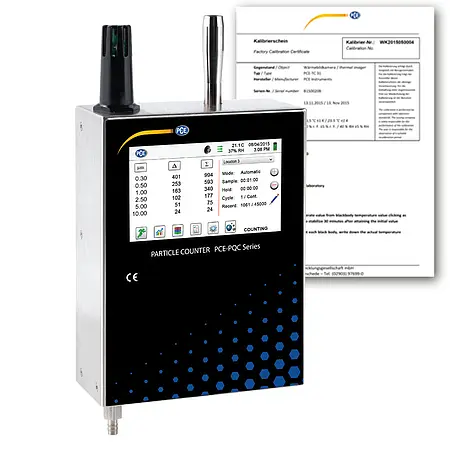 Das Feinstaubmessgerät PCE-PQC 3xEU Serie ist das am weitesten entwickelte Feinstaubmessgerät auf dem Markt. Die Integration in ein Gebäudeautomations- und Reinraummanagementsystem ist einfach über Ethernet oder (optional) Wireless 802.11 b / g, RS485 oder RS232 möglich. Das Feinstaubmessgerät misst 6 vom Benutzer wählbare Partikelgrößenkanäle, sowie (optional) Temperatur und relative Luftfeuchtigkeit. Dieses Feinstaubmessgerät speichert bis zu 45.000 Messwerte mit Zeitstempel.