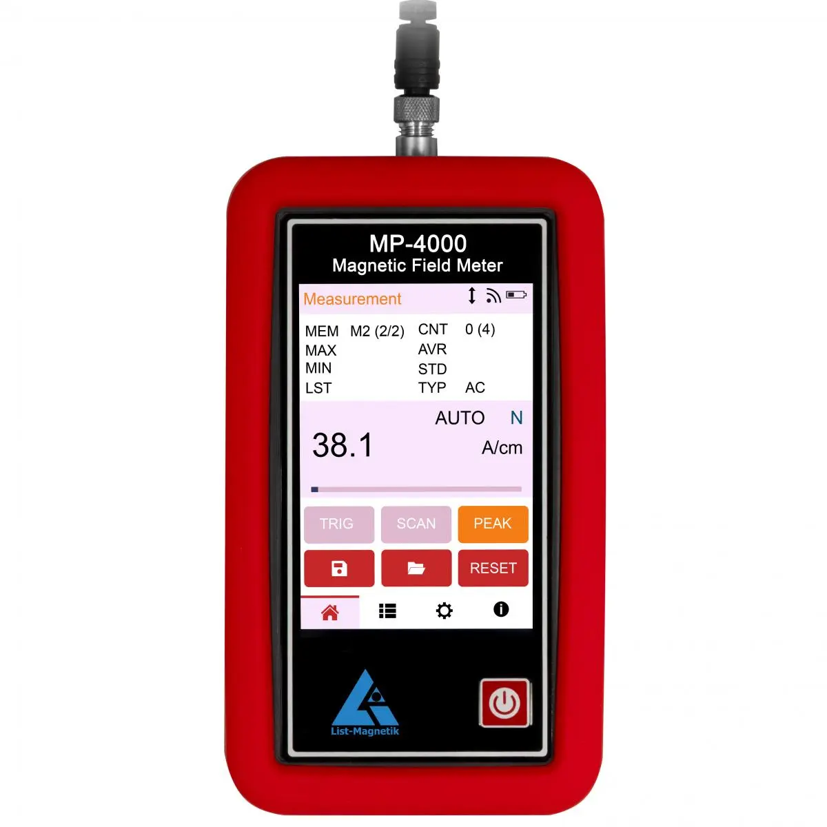 Das Radiometer verfügt über ein grafisches LCD-Touchpanel mit innovativer Benutzerführung und einer Auflösung von 320x480 Pixeln. Als hochentwickeltes Digitales Radiometer und Teil moderner Radiometere bietet es Funktionen, die weit über die klassische Magnetfeldmessung hinausgehen.