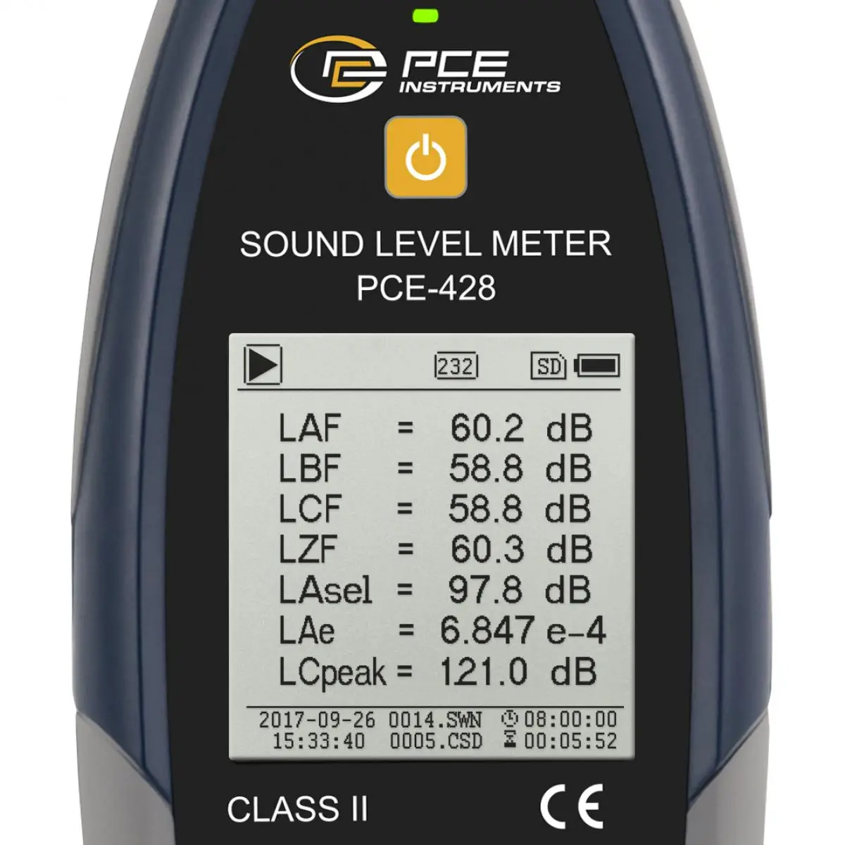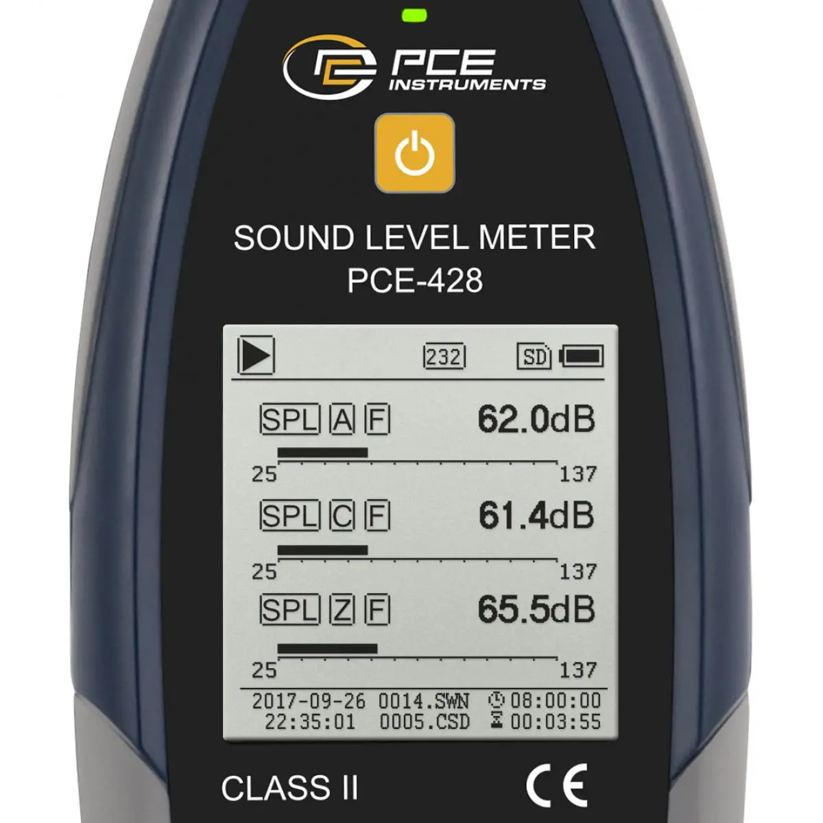 Das Schallpegelmesser PCE-428 ist ein optimales Schallpegelmessgerät für Messungen an Arbeitsplätzen, Baustellen, im Straßenverkehr, Flughäfen usw. Der Schallpegelmesser ist ein Gerät der Klasse 2 und ist mit einem Oktavbandfrequenzfilter ausgestattet. Optional kann das Schallpegelmessgerät PCE-428 durch einen 1/3 Oktavbandfilter aufgerüstet werden. Neben der numerischen Anzeige des Messwertes kann ein Graph den Verlauf des Schallpegels darstellen. Der Schallpegelmeter verfügt über verschiedene Frequenzbewertungen wie A, B, C und Z.