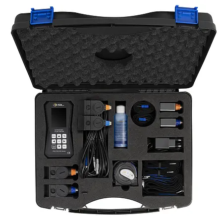 Das Strömungsmessgerät hat einen Messbereich von ±32 m/s. Mit einer Genauigkeit von ±1,5 % v. Mw. bei einem Rohrdurchmesser von DN ≥50, ±3,5 % v. Mw. bei einem Rohrdurchmesser von DN <50 und einer Reproduzierbarkeit von ±0,5 % v. Mw. ist das Strömungsmessgerät ein besonders präzises Messmittel. Für die Installation der Sensoren beim Strömungsmessgerät, steht eine Installationshilfe zur Verfügung. Bei der Installationshilfe wird grafisch die Signalqualität vom Strömungsmessgerät angezeigt. Zusätzlich wird grafisch angezeigt, ob die Sensoren vom Strömungsmessgerät in dem richtigen Abstand zueinander positioniert sind. Um Durchflussmessung mit dem Strömungsmessgerät durchzuführen, wird nach Eingabe der Rohr- und Mediumspezifikationen die Flussgeschwindigkeit, der Volumenstrom und das Volumen angezeigt. Bei der Anzeige der Messwerte stehen bei dem Strömungsmessgerät die verschiedensten Einheiten zur Verfügung. So zum Beispiel: m³, l, gal, igl, mgl, cf, bal, ib und ob.