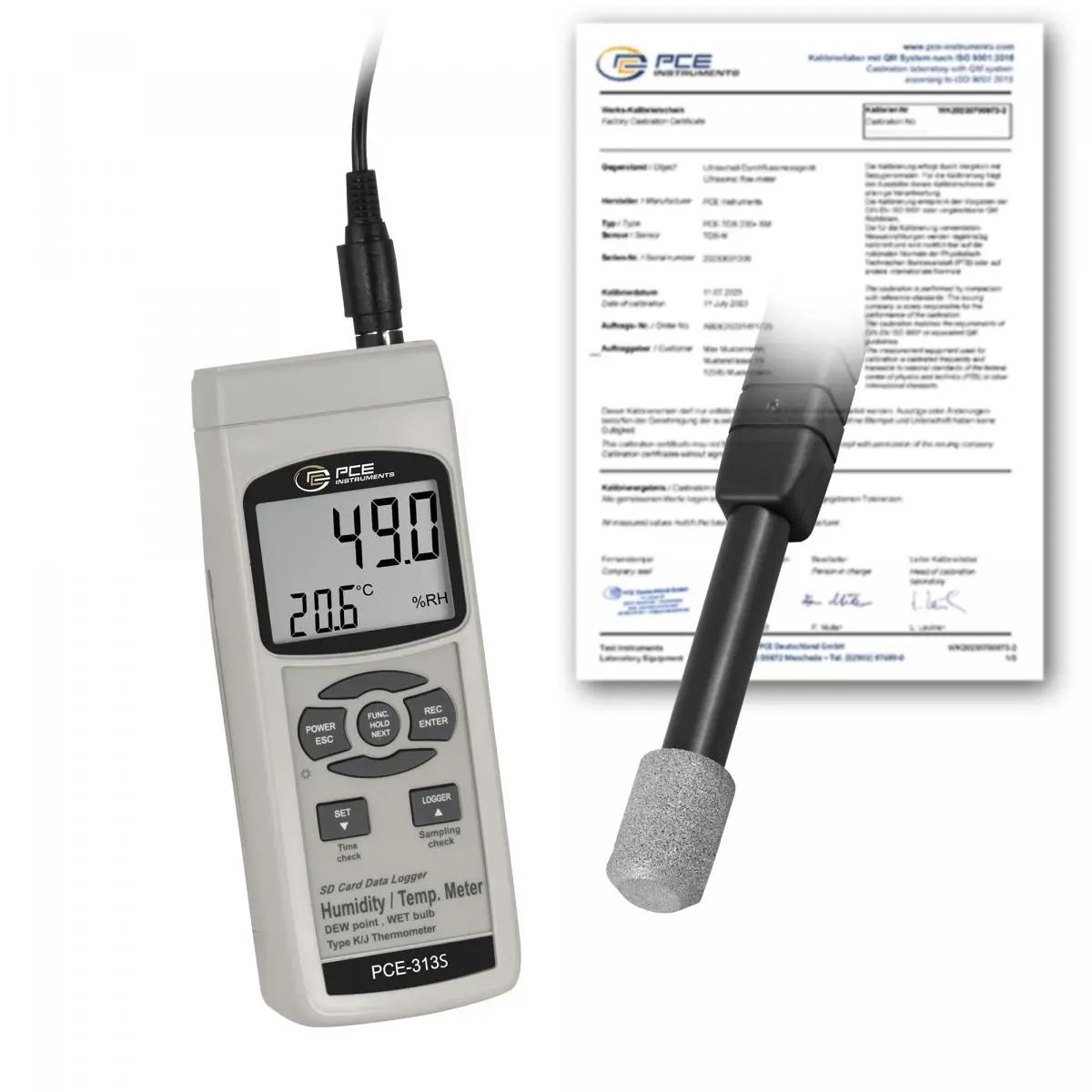 Der interne Datenspeicher am Thermo-Hygrometer über SD-Karte (1 ... 16 GB), erlaubt eine Aufzeichnung der Feuchte - und Temperatur-Messwerte bei frei auswählbarer Messrate im Direktmodus oder auch als Langzeitlogger im Datenlogger-Modus. Hierzu können Sie das Thermo-Hygrometer vorab über die Tastatur programmieren bzw. voreinstellen und dann vor Ort eine Langzeitaufnahme durchführen (ohne selbst ständig anwesend sein zu müssen). Für Langzeitaufnahmen empfiehlt es sich, das Thermo-Hygrometer mit einem Netzteil zu betreiben (optional).