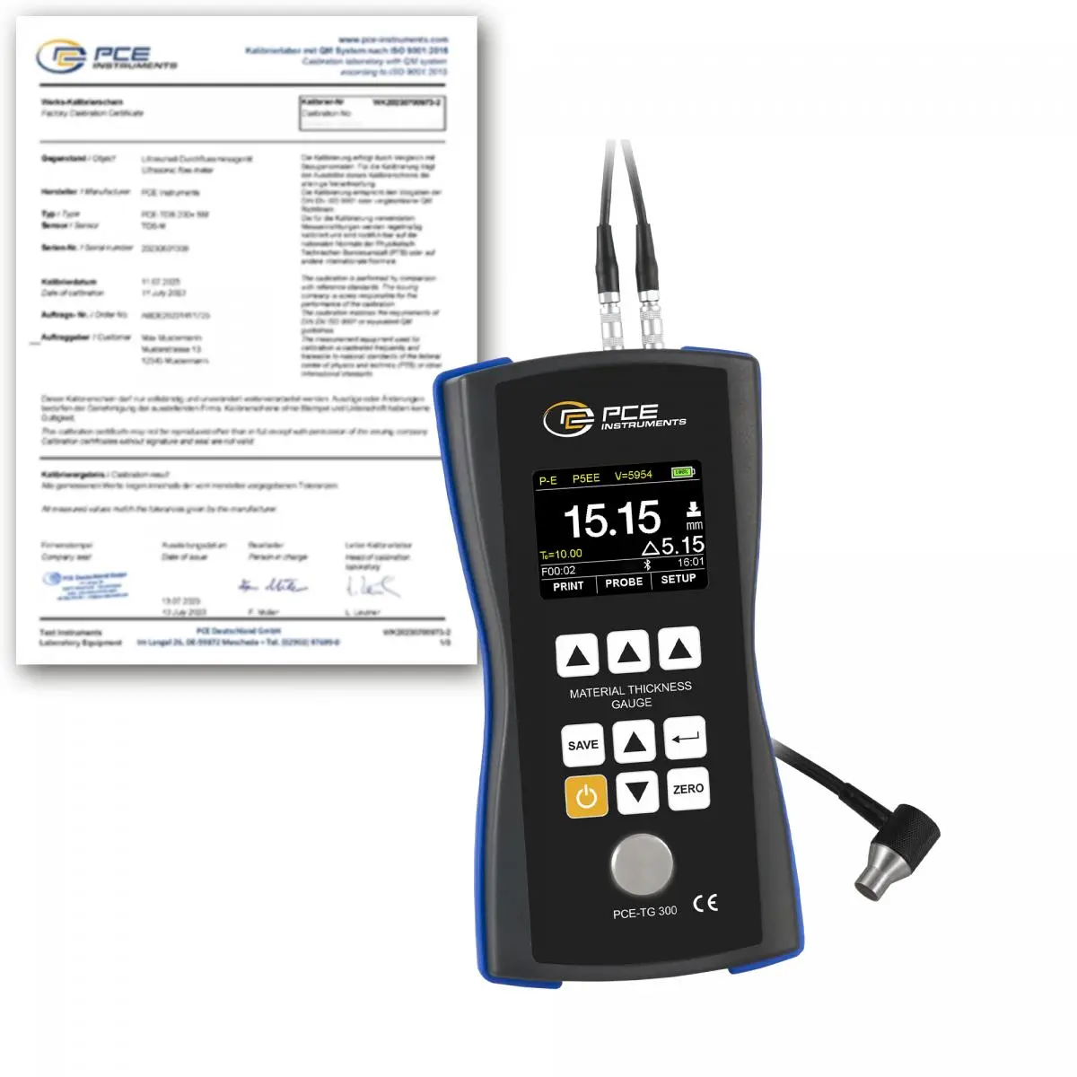Wanddickenmessgerät PCE-TG 300-NO7-ICA inkl. ISO-Kalibrierzertifikat