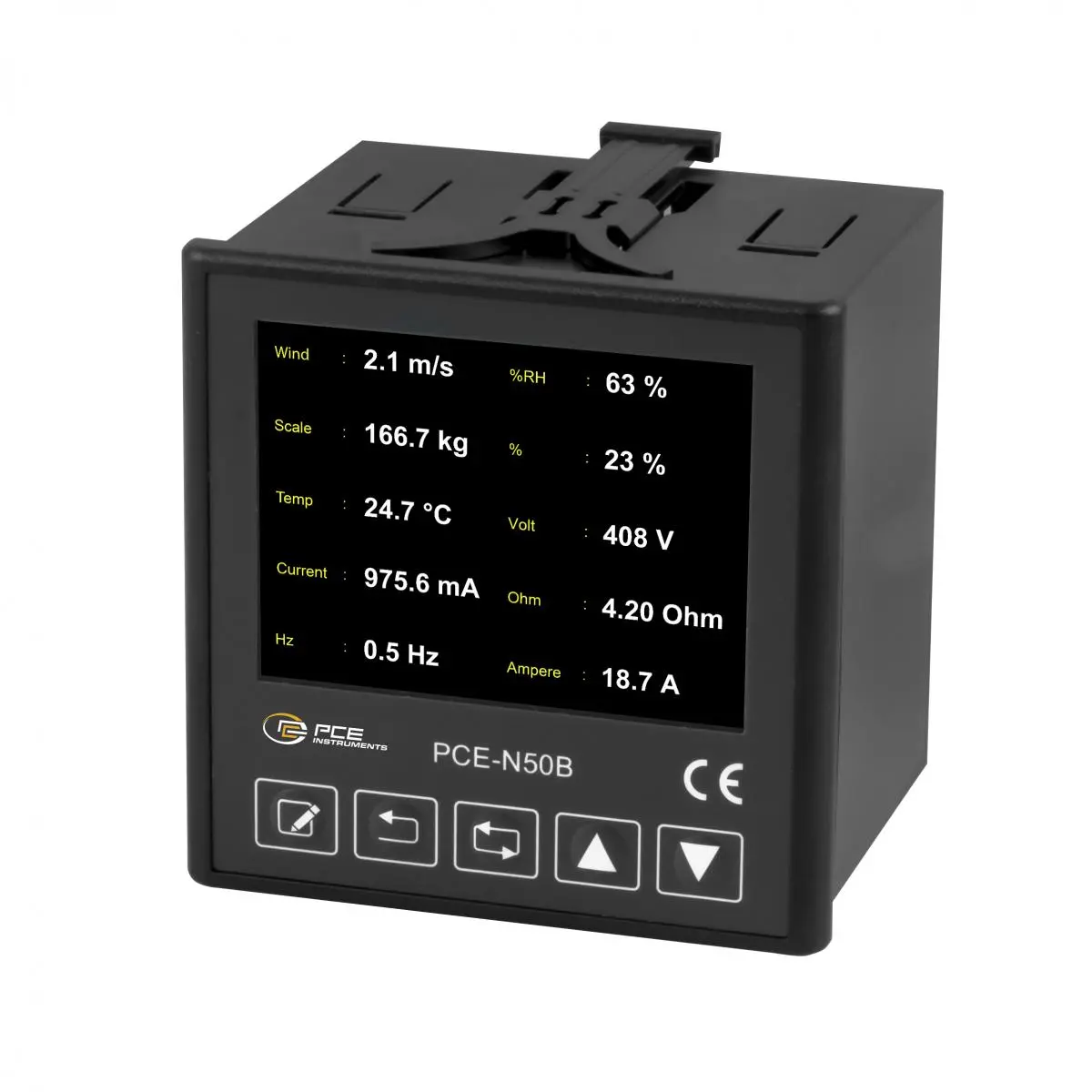 Hier können Einzelmesswerte und auch mehrere Messwerte gleichzeitig dargestellt werden. Die digtiale Einbauanzeige wird in einem 90,5 x 90,5 mm großen Schalttafelauschnitt montiert. Der Text vor dem Messwert ist individuell je Abfrageregister in der digitalen Modbus-Einbauanzeige einstellbar. Die Front von der Einbauanzeige ist nach IP 65 geschützt.