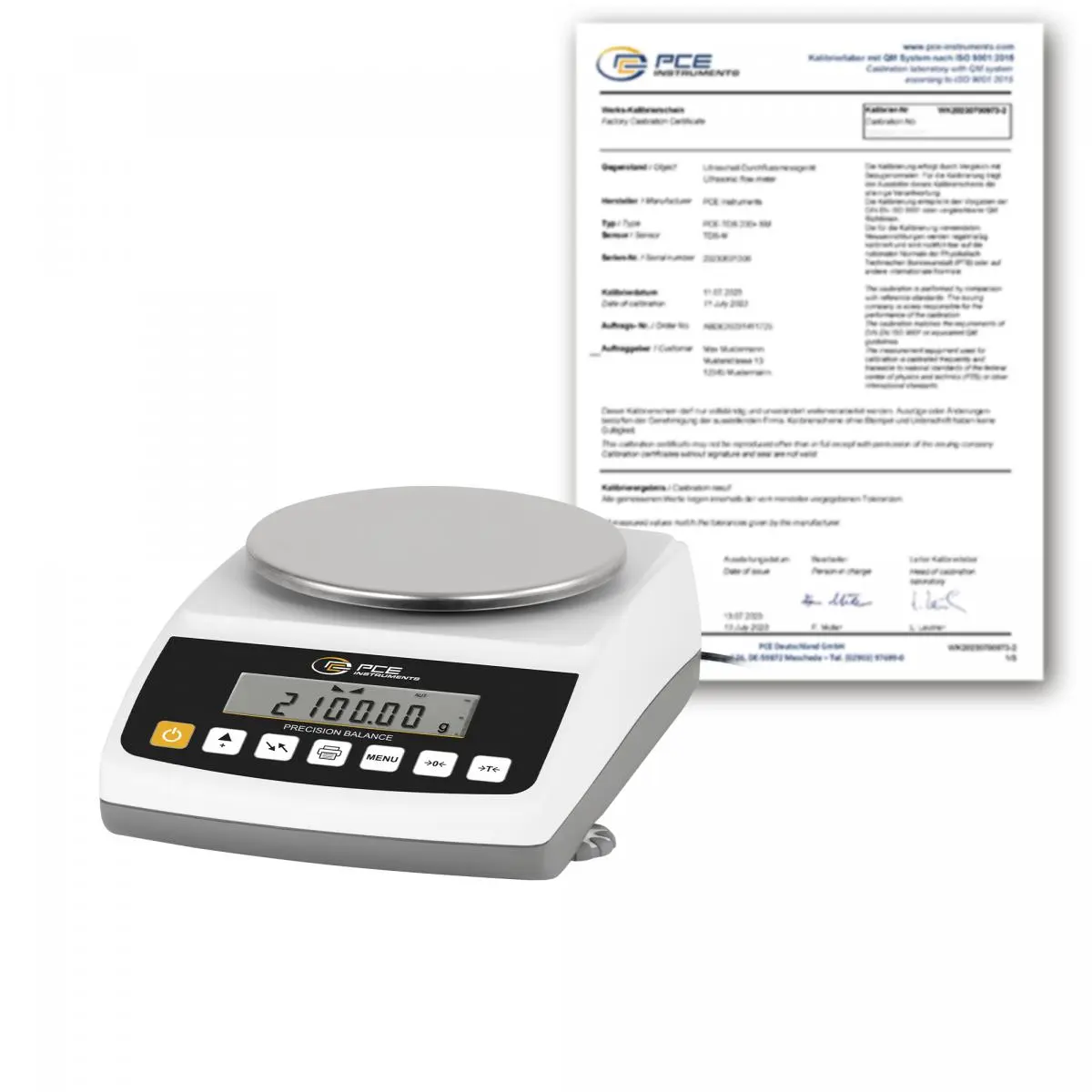 Die hochauflösende Behälterwaage, wird mit einem runden Windschutz geliefert. Dieser Windschutz ist durch einen abnehmbaren Deckel leicht zugänglich und verhindert Verfälschungen der Wägeergebnisse die durch geringe Luftbewegungen verursacht werden können. Mittels der optional erhältlichen Justiergewichte kann die Behälterwaage jederzeit schnell kontrolliert und ggf. justiert werden. Sie können das Gerät aber auch zur ISO-Laborkalibrierung zu uns oder einem anderen akkreditierten Labor zur turnusmäßigen Rekalibrierung einschicken. Die Schnittstelle erlaubt den Anschluss der Waage an einen Drucker oder Computer. Die passende Software und das Datenkabel finden Sie beim optional erhältlichen Zubehör.