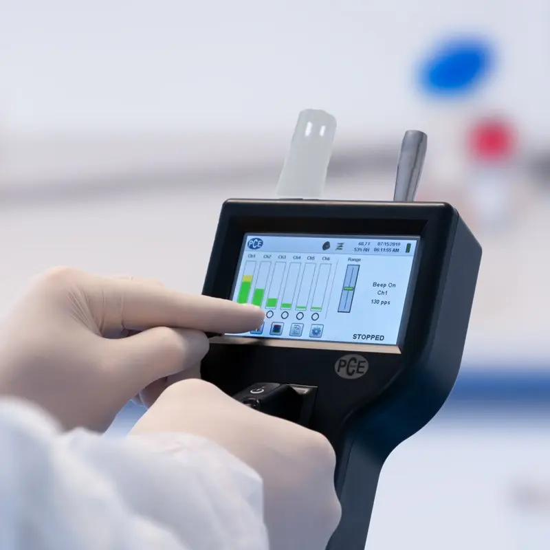 fabrieksgekalibreerd bij 0,3, 0,5, 5,0 µm |