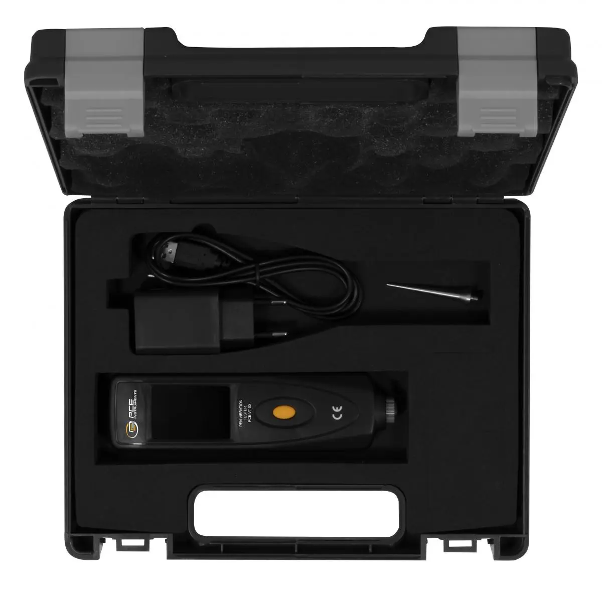 Technically, the Vibration Meter / Vibration Tester is based on a piezoelectric acceleration sensor, which ensures high measurement accuracy, exact repeatability and a wide frequency range. The measured values are shown on a 4-digit, 2-inch LCD display that supports both metric and imperial units. Practical functions such as MAX-Hold allow the highest measured value to be stored. With its robust design, low weight (123 g), compact dimensions and rechargeable battery, the Vibration Meter / Vibration Tester is particularly mobile and easy to use. The Vibration Meter / Vibration Tester is specifically suitable for operational use in maintenance, for service technicians, mechanical engineers and quality assurance departments that need to monitor machine conditions. The device can also be used in training courses or technical laboratories to demonstrate vibrations and their effects. The Vibration Meter / Vibration Tester allows precise statements to be made about the condition of machines, reduces the risk of failure and extends the service life of critical components.