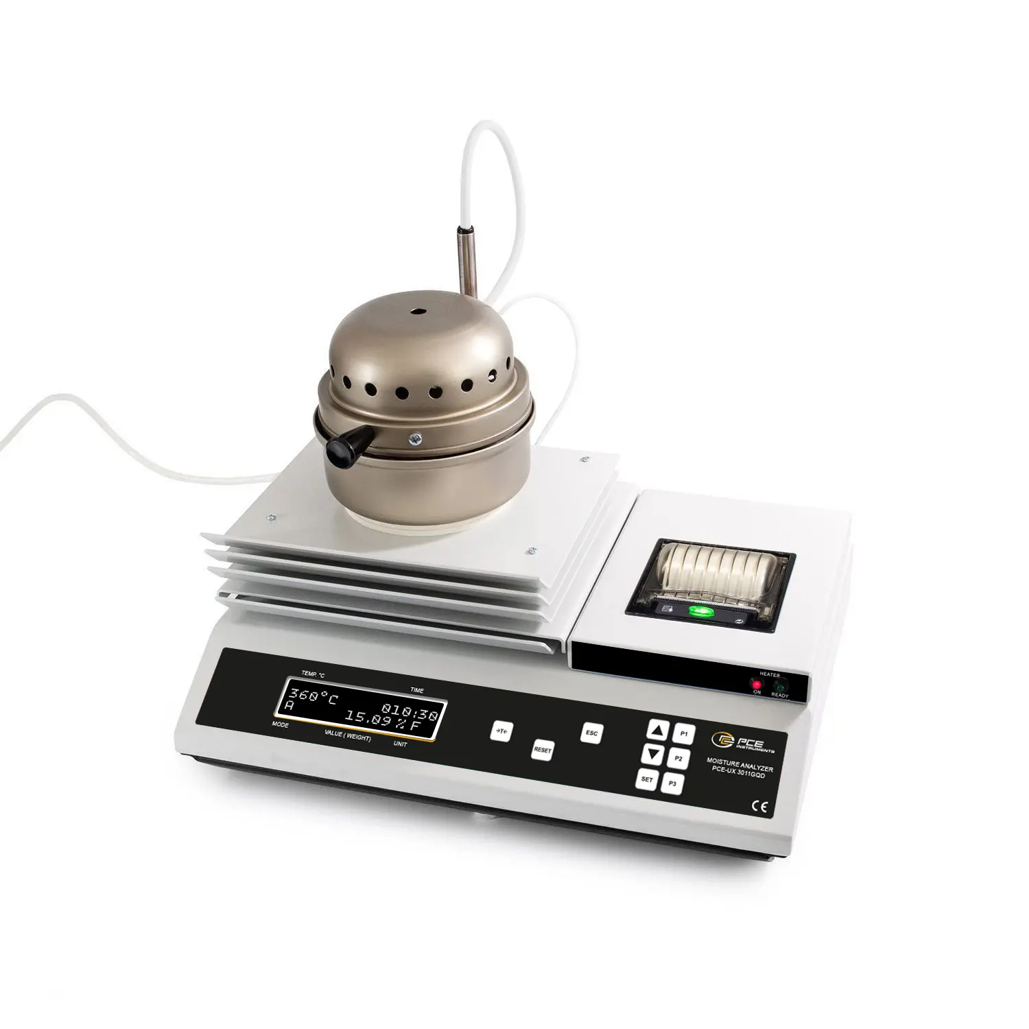 Nuestra balanza de humedad es un dispositivo preciso para determinar el contenido de materia seca y cenizas en muestras. Es adecuado para aplicaciones de extracción de materias primas, producción, procesamiento, almacenamiento, comercio, investigación y reciclaje. Con un peso máximo de muestra de 200 g y una alta resolución de 0,001 g, la balanza de humedad permite medir con exactitud el contenido de humedad y el residuo de cenizas.