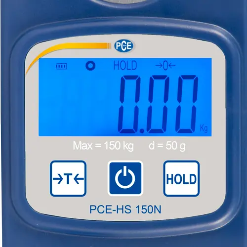 El gancho de pesar digital ofrece una rápida y económica posibilidad de pesar objetos grandes. El peso se debe colgar en el gancho de pesar digital. El gancho de pesar se envía con un gancho y un mosquetón. El gancho de pesar es ideal para el sector industrial, pero también para el uso privado (p.e. la caza, la pesca, etc). El gancho de pesar digital integra una función que permite pesar animales vivos. Para ello determina el peso promedio de varias pesadas. El gancho de pesar digital también se puede usar como medidor de fuerza, pues está equipada con la función PEAK Hold (indicación del valor máximo) y el cálculo a la unidad Newton. El gancho de pesar digital dispone de la función de desconexión automática (se puede desactivar).