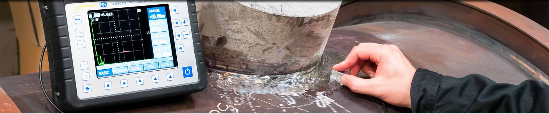 La ventaja particular del defectoscopio es la posibilidad de comprobar los componentes cuando se instala, comprobar parte directamente en la operación. Los dispositivos no se deben apagar forzosamente y los componentes del dispositivo pueden controlarse directamente desde lugar, por lo que los trabajos ya no son costosos y complejos ni requieren mucho tiempo. Por lo tanto, un defectoscopio se utiliza en diversos campos, incluyendo, por ejemplo, maquinaria, recipientes a presión, construcción de oleoductos, ingeniería aeroespacial o transporte ferroviario.